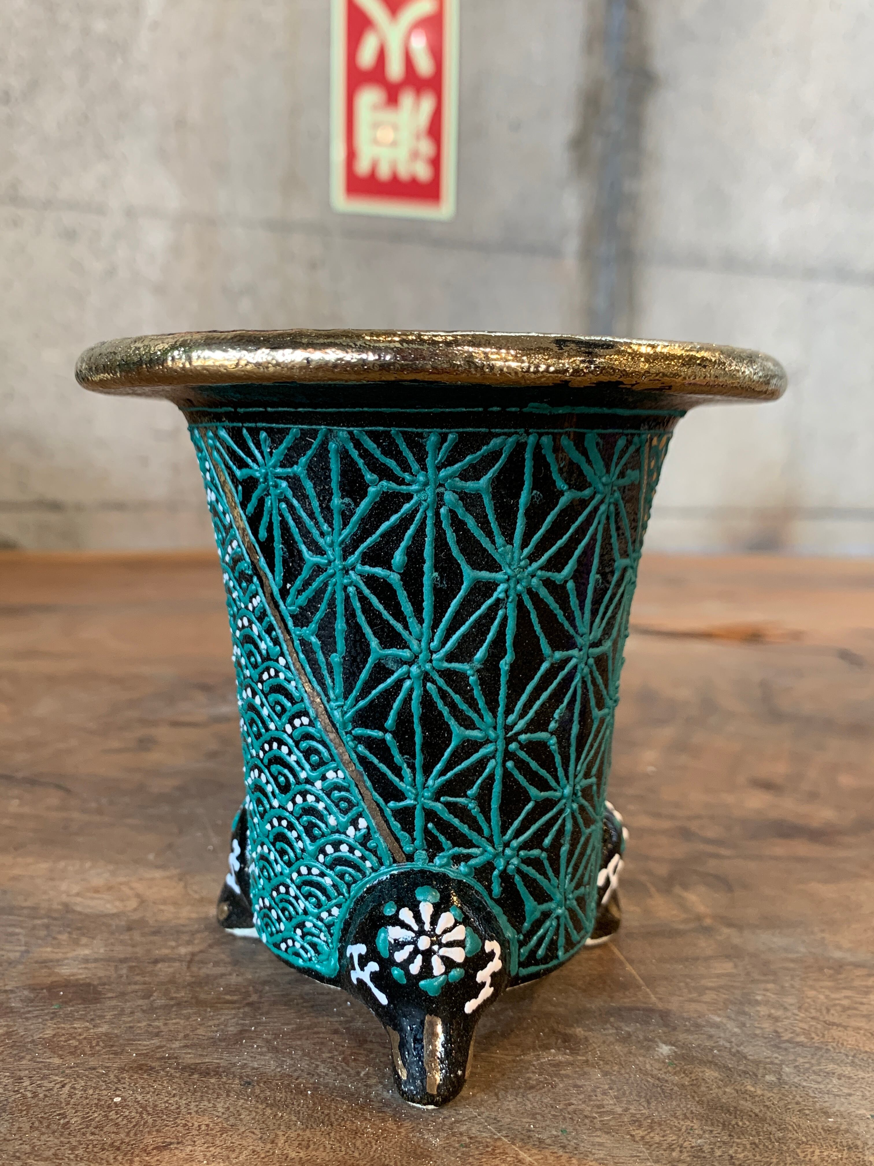 麻柄、波模様、七々子模様のトリニティーな鉢